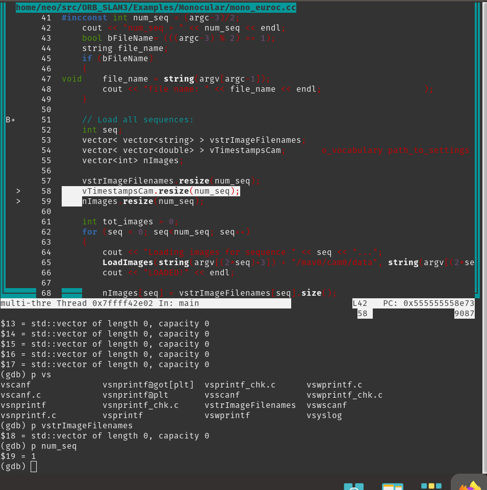 gdb로 orbslam 코드를 디버깅하려고 하는데, 파일 주소를 저장한 vector 컨테이너의 사이즈가 -11로 초기화된 상태인 거를 발견했다.