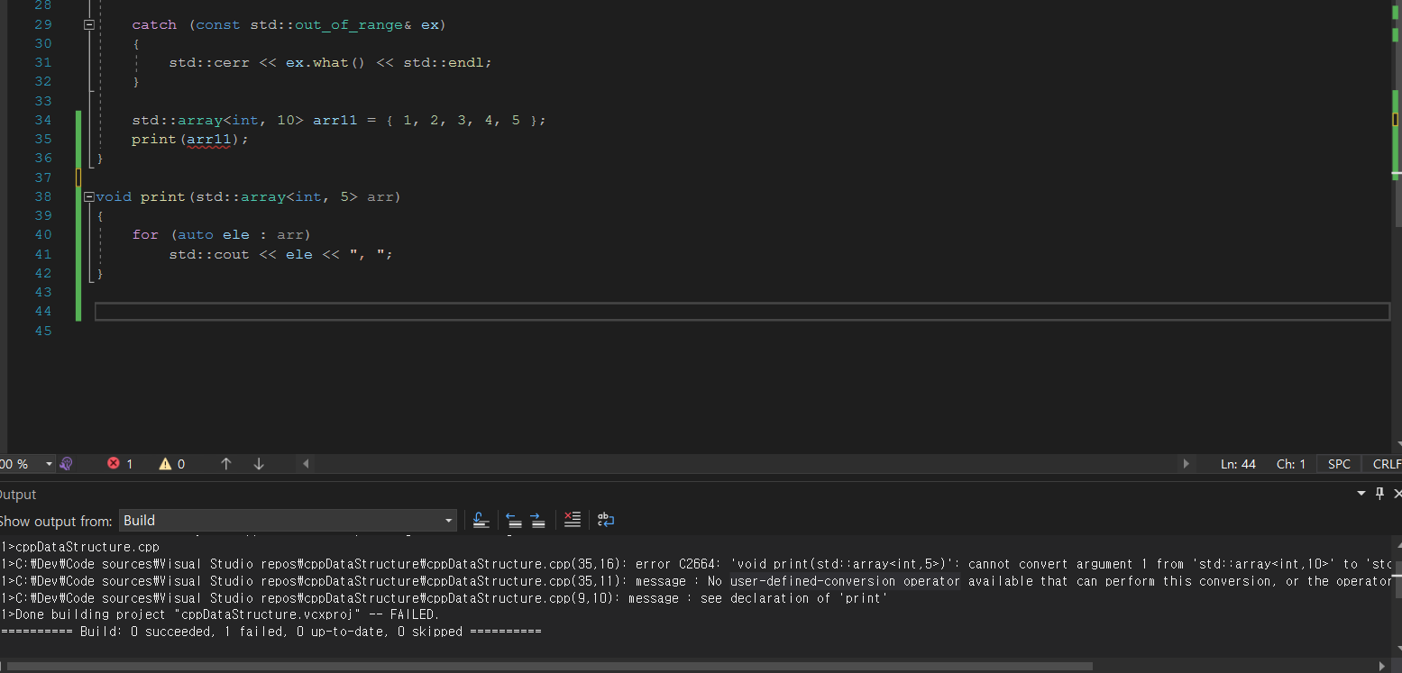 std::cout << "arr1 배열의 첫 번재 원소 : " << arr1[0] << std::endl;